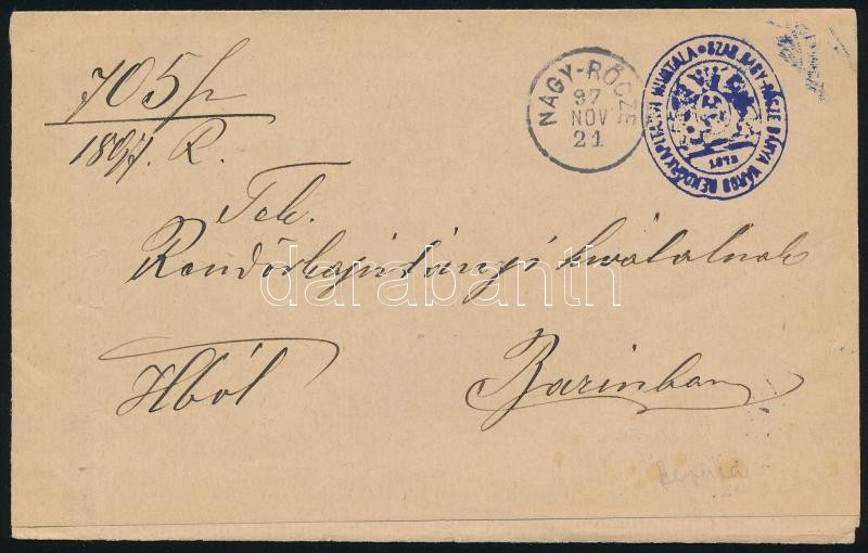 Beschreibung: 1897 Nagyrőce, az 1898. évben tartandó országos vásárokról szóló hirdetmény, levélként postázva