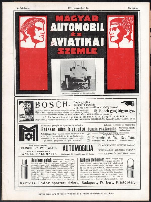 1911 Magyar Automobil és Aviatikai Szemle IX. évfolyam 46. szám, korai... https://www.darabanth.com/de/406-Fernauktion/406.0/Kunst-Dokumente-andere-Sammelgebiete/Drucksachen~2500002/1911-Magyar-Automobil-es-Aviatikai-Szemle-IX-evfolyam-46-szam-korai-kepes-reklamos-folyoira~II2510304
