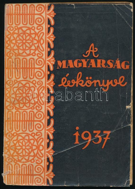 1937 Magyarság évkönyve. Bp., Globus-ny. Az illusztrációkat Szür-Szabó József, Salgó Magda, Kolozsváry Sándor rajzolóművészek készítették. Gazdag képanyaggal illusztrált. Kiadói kissé kopott, szakadt papírkötés.