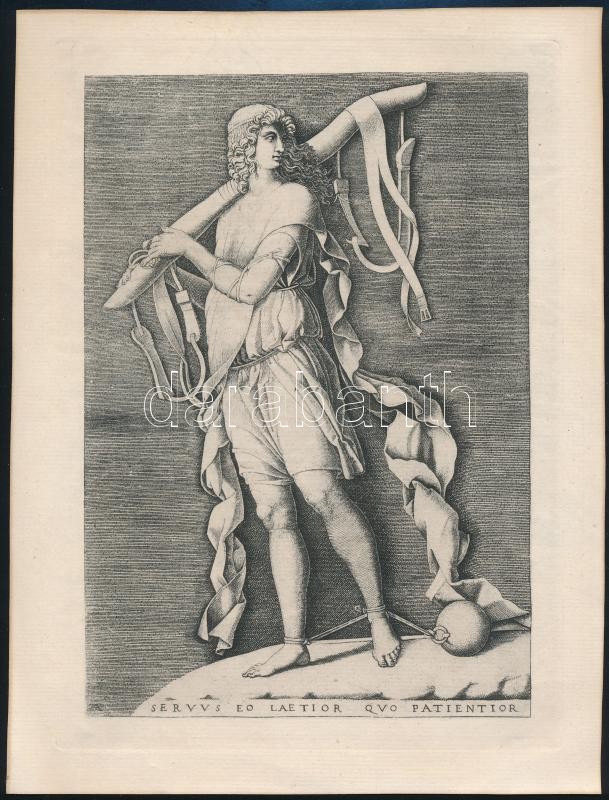 Giovanni Giacomo de Rossi (1627-1691) és Adamo Scultori (1530-1585) után: Servus Eo Laetior Quo Patientior (szolgaság allegóriája). Nyomat, papír. Jelzés nélkül. 19,5x13,5 cm