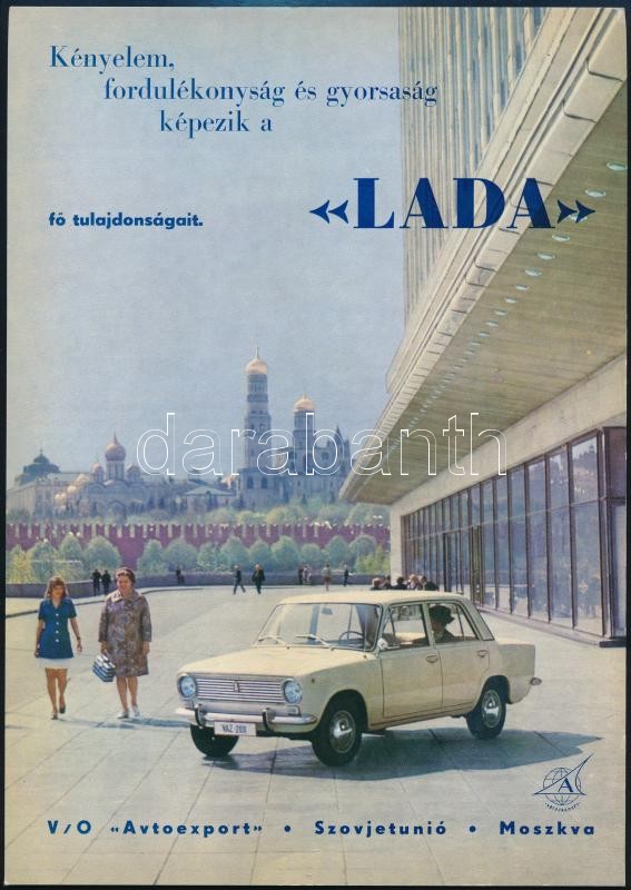 cca 1975 "Kényelem, fordulékonyság és gyorsaság képezik a LADA fő tula... https://www.darabanth.com/de/406-Fernauktion/406.0/Kunst-Dokumente-andere-Sammelgebiete/Drucksachen~2500002/cca-1975-Kenyelem-fordulekonysag-es-gyorsasag-kepezik-a-LADA-fo-tulajdonsagait-ketoldal~II2509600