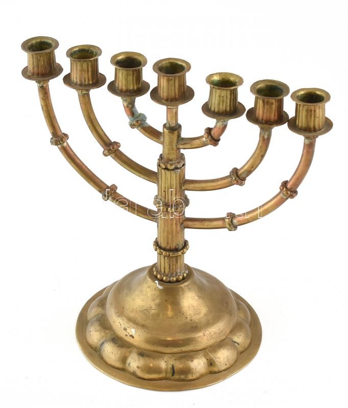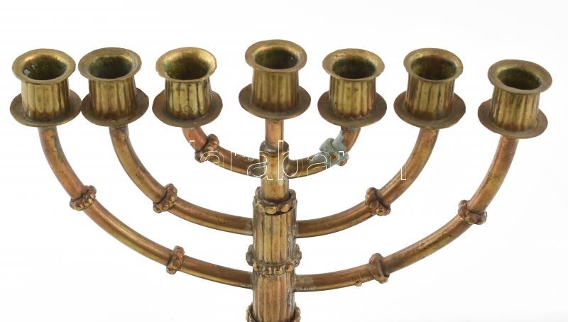 Menóra, réz, kopott, m: 22 cm https://www.darabanth.com/de/406-Fernauktion/406.0/Kunst-Dokumente-andere-Sammelgebiete/Judaica~500025/Menora-rez-kopott-m-22-cm~II2512571
