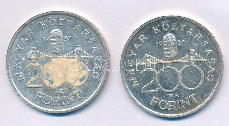1992. 200Ft Ag "MNB" (2x) T:1-,2 egyiken ragasztásnyom