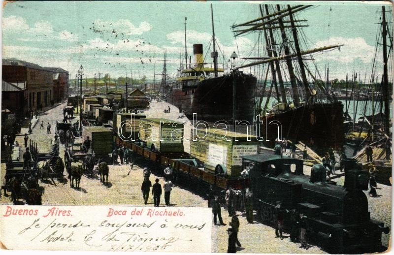 1906 Buenos Aires, Boca del Riachuelo / wharf, industrial railway, loc... https://www.darabanth.com/de/407-Fernauktion/407.0/Ansichtskarten/Argentinien~1000016/1906-Buenos-Aires-Boca-del-Riachuelo-wharf-industrial-railway-locomotive-steamship-worn-corne~II2517327