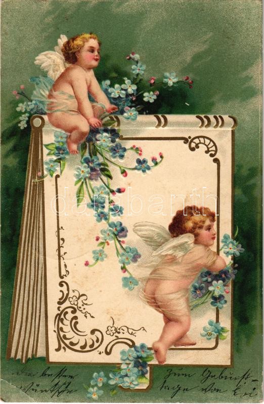 1903 Emb. litho greeting card with angels (EK) https://www.darabanth.com/de/407-Fernauktion/407.0/Ansichtskarten/GruC39Fkarten-Feste~1000090/1903-Emb-litho-greeting-card-with-angels-EK~II2517753