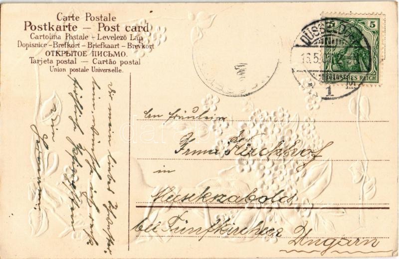 Beschreibung: 1907 Ein frohes Pfingstfest / Pentecost greeting card. Floral, Emb. litho (apró lyuk / tiny pinhole)