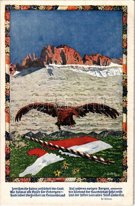 Beschreibung: Tiroler Werbekarte: Die Zerreissung Tirols. Amon Göth / Tyrolean irredenta art