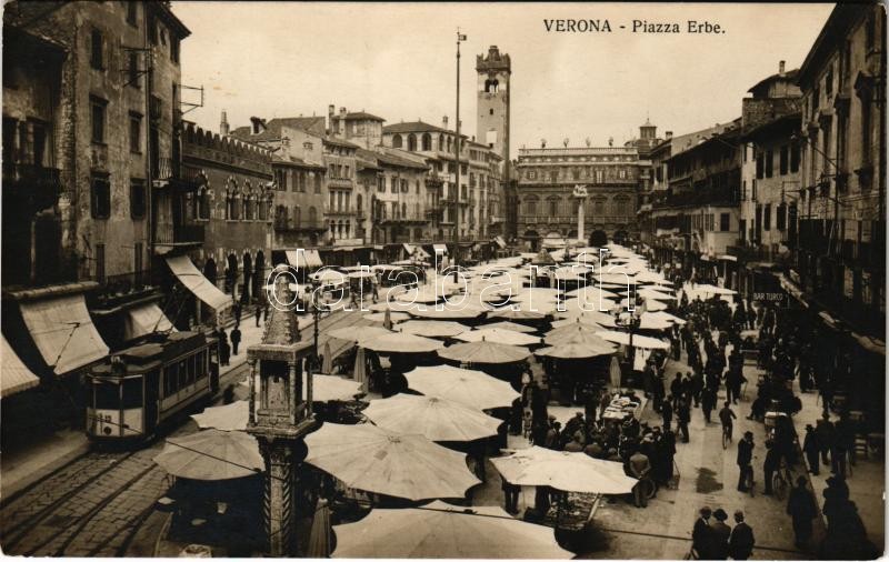 1927 Verona, Piazza Erbe / fruit market https://www.darabanth.com/de/407-Fernauktion/407.0/Ansichtskarten/Italien~1000073/1927-Verona-Piazza-Erbe-fruit-market~II2520393