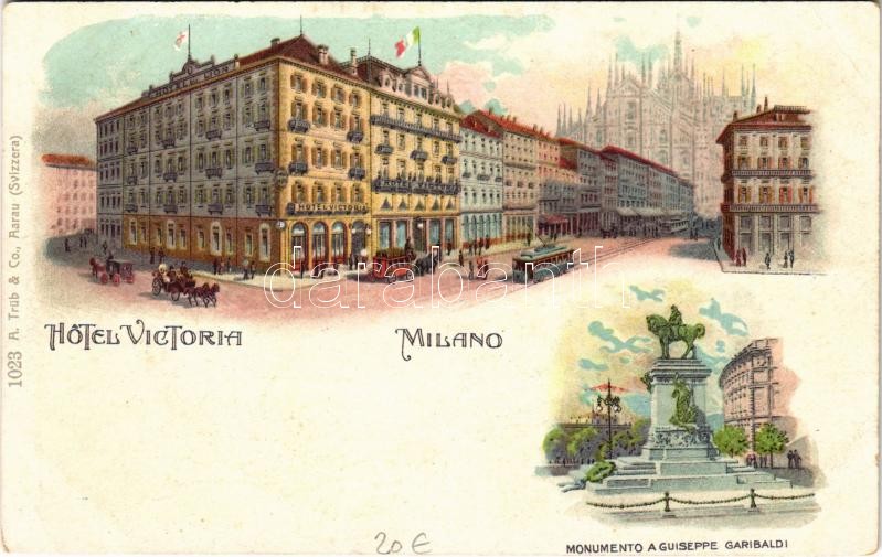 Milano, Milan; Hotel Victoria, Monumento a Guiseppe Garibaldi / hotel,... https://www.darabanth.com/de/407-Fernauktion/407.0/Ansichtskarten/Italien~1000073/Milano-Milan-Hotel-Victoria-Monumento-a-Guiseppe-Garibaldi-hotel-tram-monument-A-Trub-Co~II2514272
