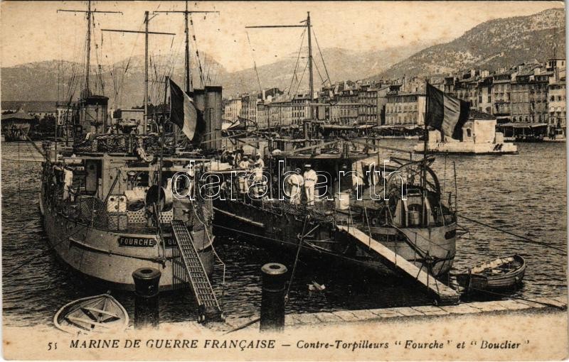 Marine de Guerre Francaise. Contre-Torpilleurs "Fourche" et "Bouclier" / WWI French Navy, Bouclier-class destroyers "Fourche" and "Bouclier" with mariners on board (EK)