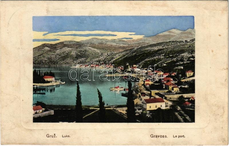 1910 Gruz, Gravosa; Luka / Le port / kikötő / port (r) https://www.darabanth.com/de/407-Fernauktion/407.0/Ansichtskarten/Kroatien~1000008/1910-Gruz-Gravosa-Luka-Le-port-kikoto-port-r~II2519245