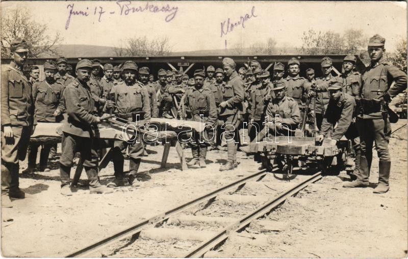 Első világháborús katonai vasúti sín építés, hajtány / WWI K.u.k. mili... https://www.darabanth.com/de/407-Fernauktion/407.0/Ansichtskarten/Militaria~1000053/Elso-vilaghaborus-katonai-vasuti-sin-epites-hajtany-WWI-Kuk-military-railway-constru~II2516033