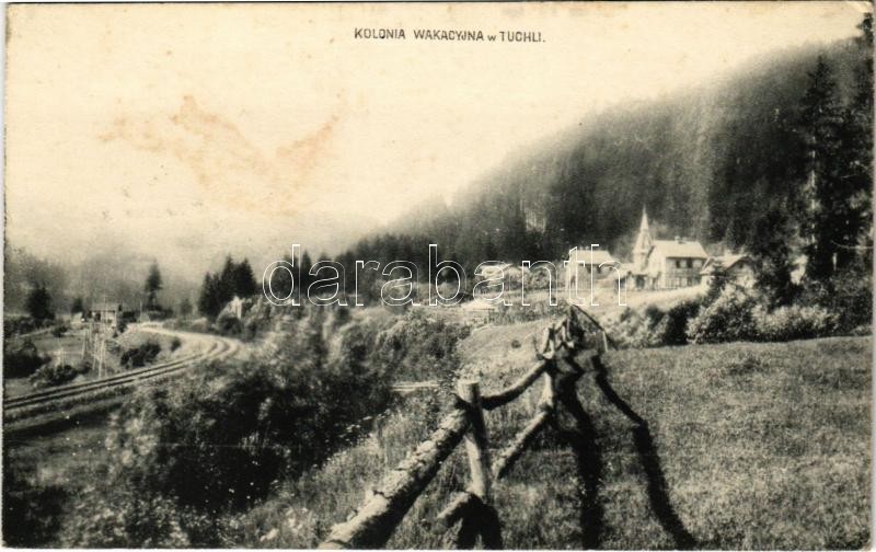 1914 Tuchla, Kolonia Wakacyjna w Tuchli / holiday resort, railway line... https://www.darabanth.com/de/407-Fernauktion/407.0/Ansichtskarten/Polen~1000050/1914-Tuchla-Kolonia-Wakacyjna-w-Tuchli-holiday-resort-railway-line-railway-station-EK~II2513452