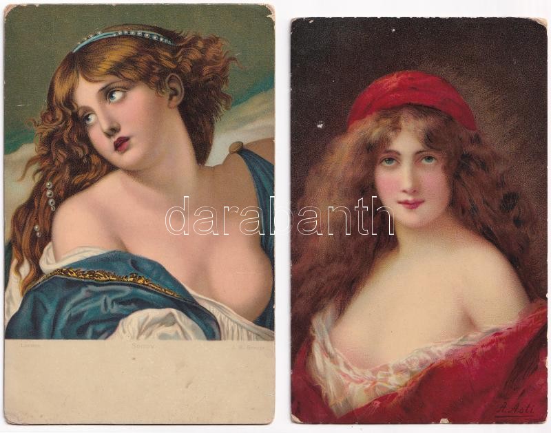 Beschreibung: 2 db RÉGI litho művész képeslap (1 Stengel) / 2 pre-1945 litho art postcards (1 Stengel)