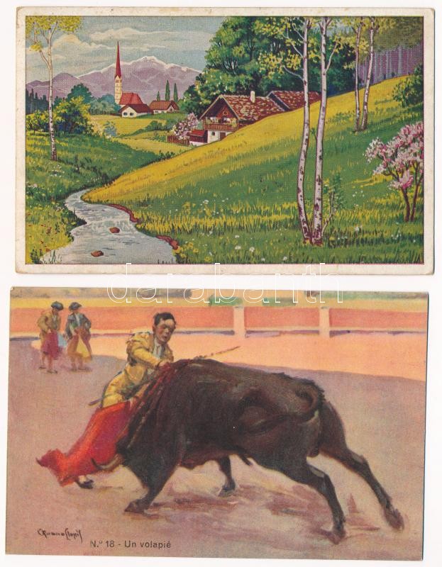 Beschreibung: 29 db RÉGI motívum képeslap vegyes minőségben: bikaviadal, művész / 29 pre-1945 motive postcards in mixed quality: art, bullfighting