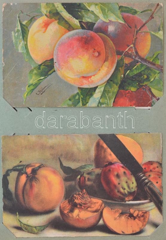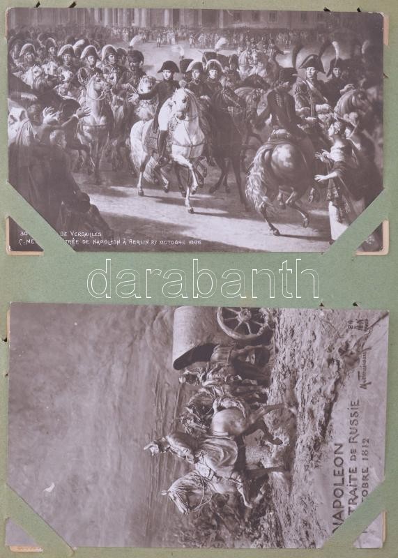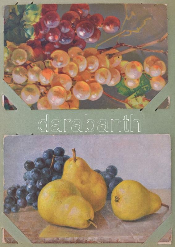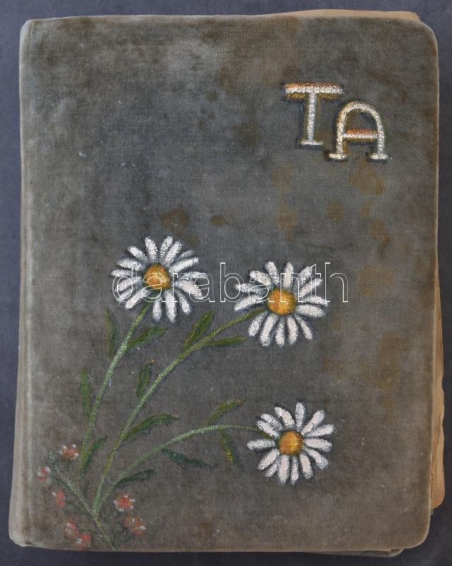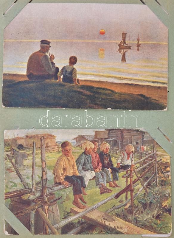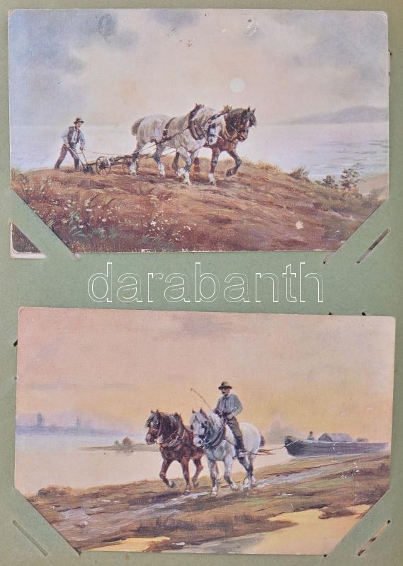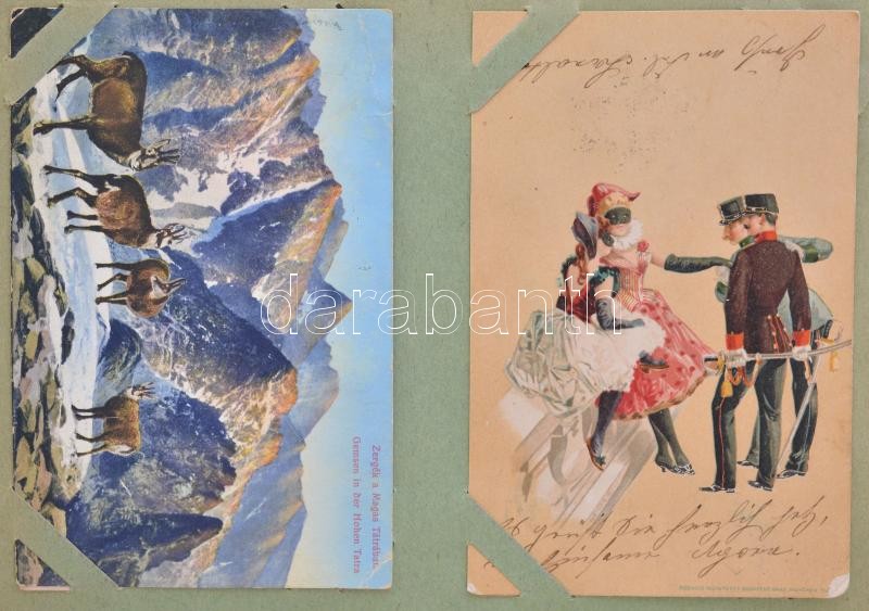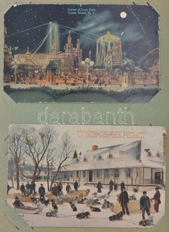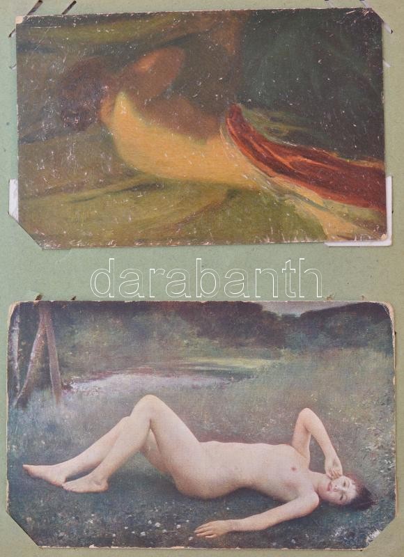 Közel 140 darabos képeslap gyűjtemény maradvány régi képeslap albumban, benne főleg motívum és üdvözlő lapok, kevés magyar és külföldi városkép, néhány modern