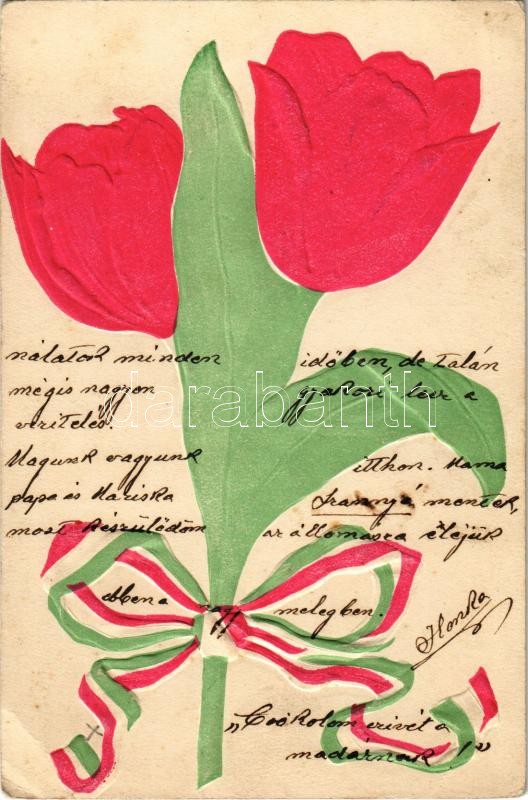 1906 Tulipános magyar szalagos hazafias dombornyomott propaganda lap /... https://www.darabanth.com/de/407-Fernauktion/407.0/Ansichtskarten/Propaganda-Politik~1000074/1906-Tulipanos-magyar-szalagos-hazafias-dombornyomott-propaganda-lap-Hungarian-patriotic-propagan~II2516908