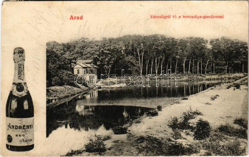 1909 Arad, Városligeti tó, korcsolya pavilon, Andrényi pezsgő reklám /... https://www.darabanth.com/de/407-Fernauktion/407.0/Ansichtskarten/Siebenburgen~1000005/1909-Arad-Varosligeti-to-korcsolya-pavilon-Andrenyi-pezsgo-reklam-lake-ice-skating-hall-~II2516076