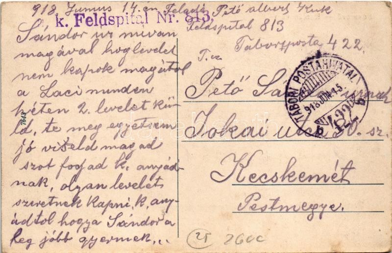 Beschreibung: 1918 Sósmező, Poiana Sarata; Román vám / Romanian customs office + "K.u.k. Feldspital Nr. 813."