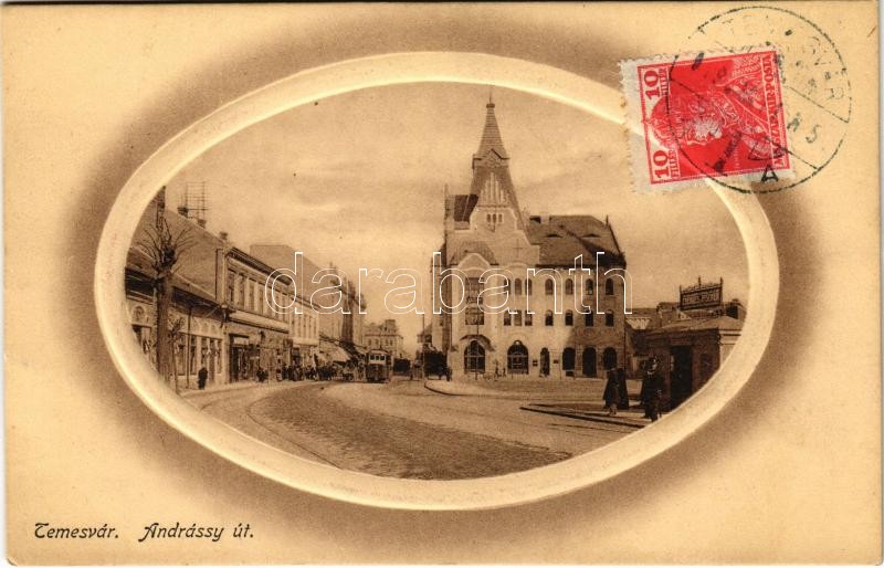 1919 Temesvár, Timisoara; Andrássy út, villamos, Csendes és Fischer ki... https://www.darabanth.com/de/407-Fernauktion/407.0/Ansichtskarten/Siebenburgen~1000005/1919-Temesvar-Timisoara-Andrassy-ut-villamos-Csendes-es-Fischer-kioszkja-street-tram-sho~II2518747