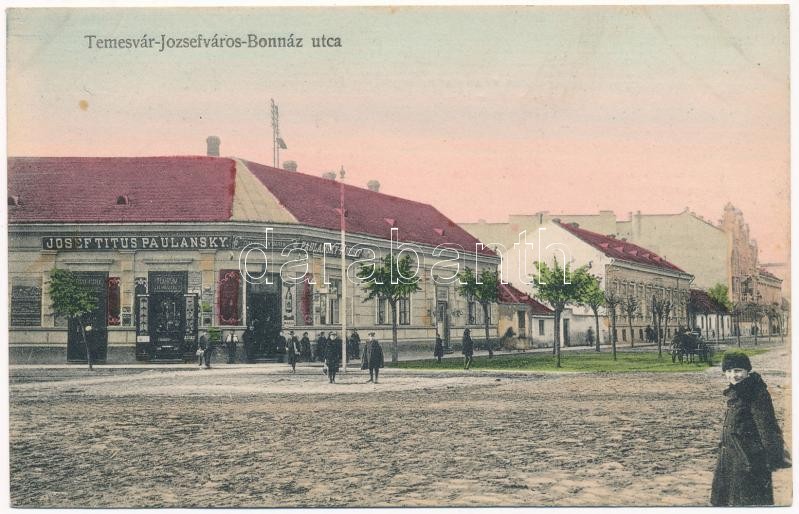1921 Temesvár, Timisoara; Józsefváros, Bonnáz utca, Paulansky Titus József üzlete a fehér medvéhez. Kugel Károly fényképész kiadása / Zum weissen Bären / shop