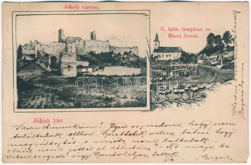 1905 Jókő, Jókeő, Dobrá Voda; várrom, Római katolikus templom, Blava f... https://www.darabanth.com/de/407-Fernauktion/407.0/Ansichtskarten/Slowakei~1000006/1905-Joko-Jokeo-Dobra-Voda-varrom-Romai-katolikus-templom-Blava-forras-castle-ruins-~II2518633