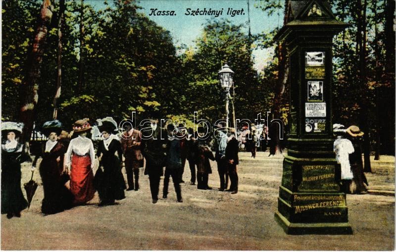 Kassa, Kosice; Széchenyi liget, hirdetőoszlop Mildner Ferenc fényképés... https://www.darabanth.com/de/407-Fernauktion/407.0/Ansichtskarten/Slowakei~1000006/Kassa-Kosice-Szechenyi-liget-hirdetooszlop-Mildner-Ferenc-fenykepeszeti-uzletenek-reklamj~II2514425
