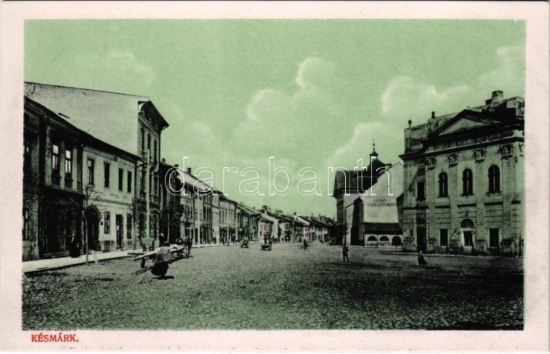 Beschreibung: Késmárk, Kezmarok; Kossuth Lajos utca, Városháza, H. Donáth szállodája, üzletek. Feitzinger Ede No. 531. / street view, town hall, hotel, shops