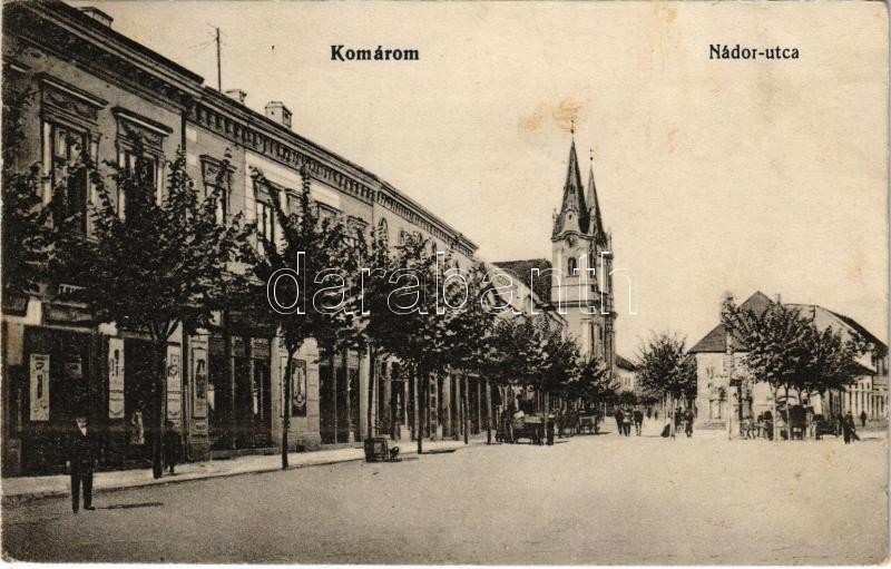 Beschreibung: Komárom, Komárno; Nádor utca, üzletek. L.H. Pannonia / street view, shops (fl)