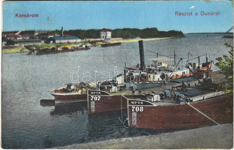 Komárom, Komárnó; Részlet a Dunáról, MFTR 707 és 708 uszályok / Danube... https://www.darabanth.com/de/407-Fernauktion/407.0/Ansichtskarten/Slowakei~1000006/Komarom-Komarno-Reszlet-a-Dunarol-MFTR-707-es-708-uszalyok-Danube-river-barges~II2323429