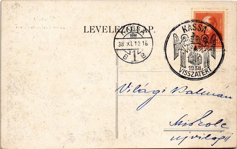 Beschreibung: Krasznahorkaváralja, Krásnohorské Podhradie; vár / Hrad Krásna Horka / castle + "1938 Kassa visszatért" So. Stpl