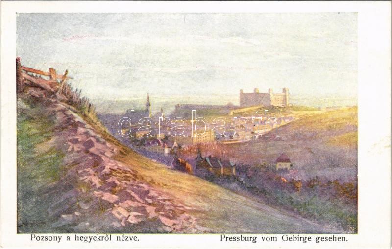 Beschreibung: Pozsony, Pressburg, Bratislava; a hegyekről nézve, vár / Preßburg vom Gebirge gesehen / view from the mountains, castle. B.K.W.I. 386-7. s: Marx Béla