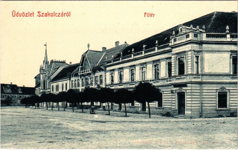 Beschreibung: Szakolca, Skalica; Fő tér, Városi vendéglő. W.L. Bp. 5625. Schefranek H. és fia kiadása / main square, restaurant