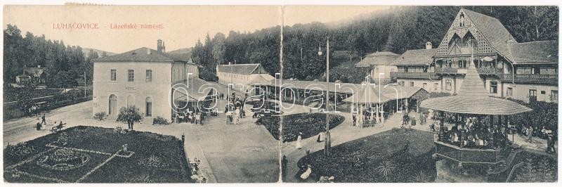 Beschreibung: 1909 Luhacovice, Lázenské námestí / spa, bath, hotel, music pavilion with band. folding panoramacard (Rb)