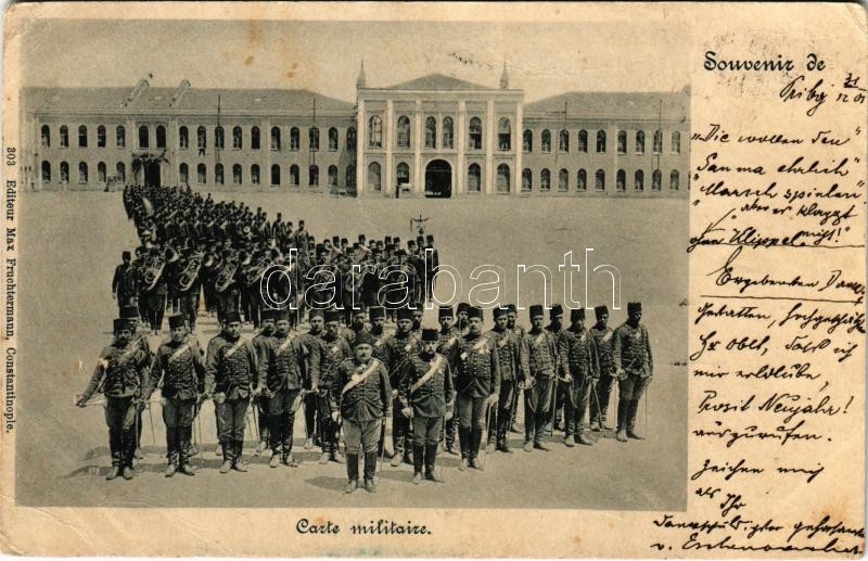 Beschreibung: 1901 Constantinople, Instanbul; Carte militaire / Turkish military, group of soldiers with military band. Editeur Max Fruchtermann (Rb)
