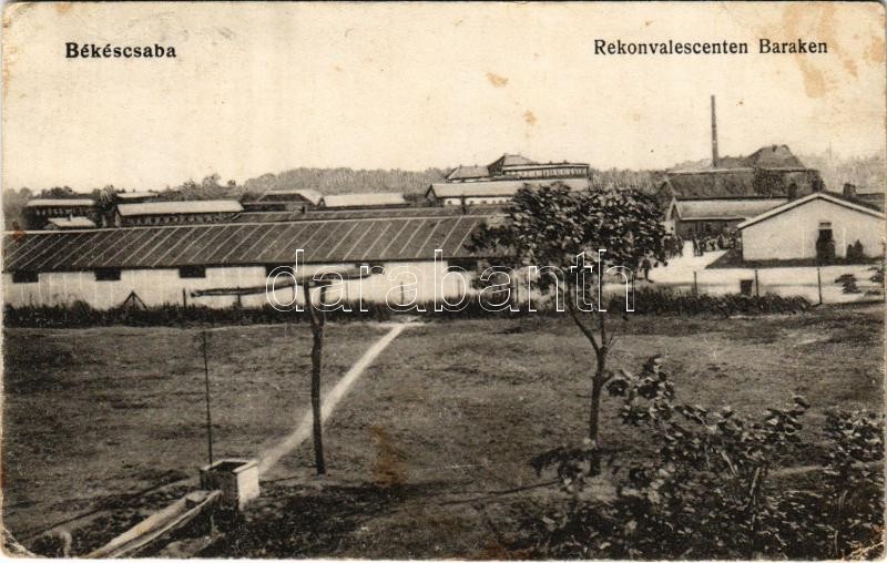 1915 Békéscsaba, Rekonvalescenten Baraken / laktanya (EK) https://www.darabanth.com/de/407-Fernauktion/407.0/Ansichtskarten/Ungarn~1000004/1915-Bekescsaba-Rekonvalescenten-Baraken-laktanya-EK~II2517735