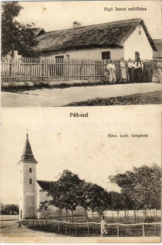 1915 Pákozd, Római katolikus templom, Rigó Jancsi szülőháza https://www.darabanth.com/de/407-Fernauktion/407.0/Ansichtskarten/Ungarn~1000004/1915-Pakozd-Romai-katolikus-templom-Rigo-Jancsi-szulohaza~II2516408
