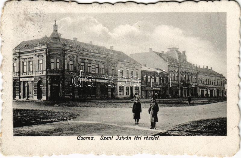 1917 Csorna, Szent István téri részlet, Pollák Géza, Kokas Jenő üzlete... https://www.darabanth.com/de/407-Fernauktion/407.0/Ansichtskarten/Ungarn~1000004/1917-Csorna-Szent-Istvan-teri-reszlet-Pollak-Geza-Kokas-Jeno-uzlete-Parisi-Nagy-Aruhaz~II2517036