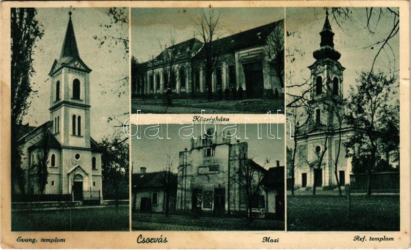 1940 Csorvás, Evangélikus templom, Községháza, Mozi, Református templo... https://www.darabanth.com/de/407-Fernauktion/407.0/Ansichtskarten/Ungarn~1000004/1940-Csorvas-Evangelikus-templom-Kozseghaza-Mozi-Reformatus-templom-Neller-Janos-kiadas~II2513517