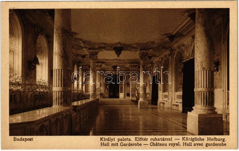 Budapest I. Királyi palota, előtér ruhatárral, belső. Rigler rt. 82. s... https://www.darabanth.com/de/407-Fernauktion/407.0/Ansichtskarten/Ungarn~1000004/Budapest-I-Kiralyi-palota-eloter-ruhatarral-belso-Rigler-rt-82-sz~II2515832