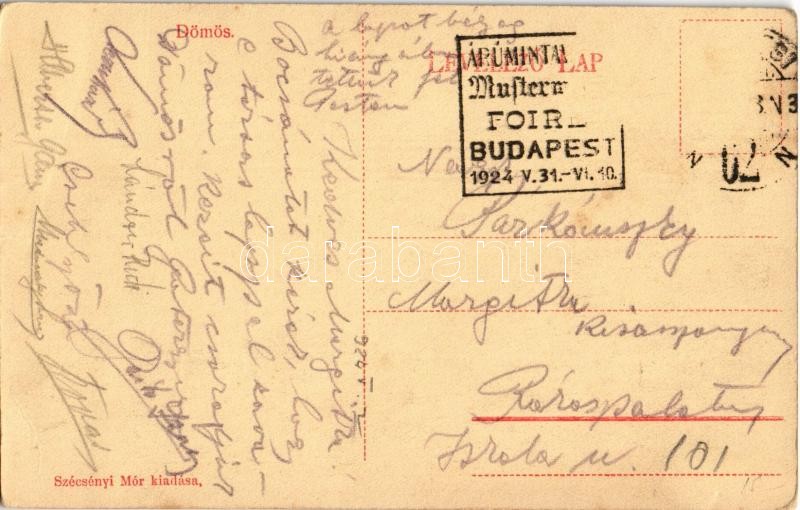 Beschreibung: Dömös, Királygunyhó. Szécsényi Mór kiadása + "1924 Árumintavásár" So. Stpl