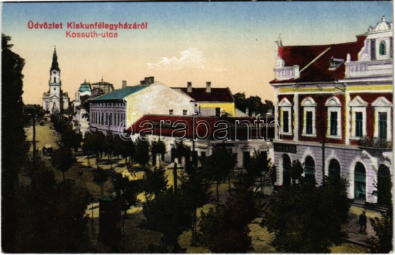 Kiskunfélegyháza, Kossuth utca, Népbank, Kiss Lajos üzlete. Royko B. k... https://www.darabanth.com/de/407-Fernauktion/407.0/Ansichtskarten/Ungarn~1000004/Kiskunfelegyhaza-Kossuth-utca-Nepbank-Kiss-Lajos-uzlete-Royko-B-kiadasa~II2516242
