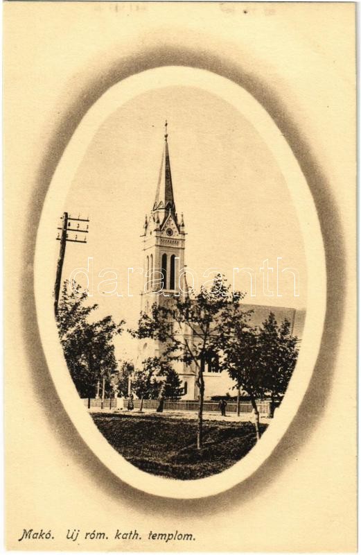 Makó, Új római katolikus templom https://www.darabanth.com/de/407-Fernauktion/407.0/Ansichtskarten/Ungarn~1000004/Mako-Uj-romai-katolikus-templom~II2515038