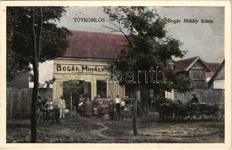 Tótkomlós, Bogár Mihály üzlete https://www.darabanth.com/de/407-Fernauktion/407.0/Ansichtskarten/Ungarn~1000004/Totkomlos-Bogar-Mihaly-uzlete~II2520063