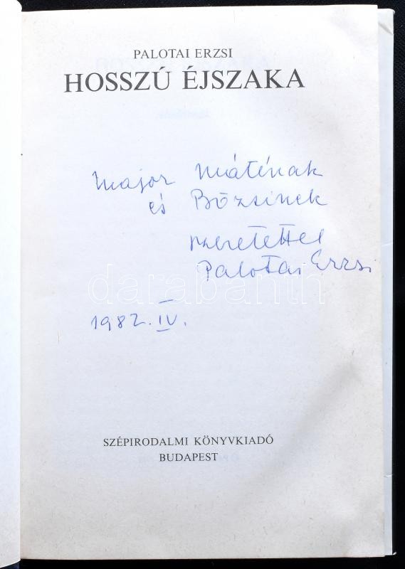 A szerző, Palotai Boris (1904-1983) József Attila-díjas író, költő által Major Máté (1904-1986) Kossuth-díjas építész részére dedikált példány.