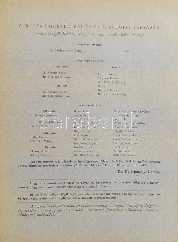 1889-1938 Turul. A Magyar Heraldikai és Genealogiai Társaság Közlönyének számai, benne több teljes évfolyammal is, eredeti papírkötésekben: 1889 3. füzet, 1890 3. füzet, 1898 3. füzet. 1905 3. füzet,1906 3. füzet, 1907 1-4. füzet.,1908 1-4. füzet.,1909 2.,3.,4. füzet,1910 1-4. füzet.,1911 1-4. füzet.,1912.1-4. füzet., 1913.1, 3-4. füzet.,1914 1-4. füzet., 1915.1-4. füzet. 1917. 1-4. füzet. (1917. évi szám.), 1924-1925 38. kötet.,1928 3-4. füzet., 1929 3-4. füzet, 1930 3-4. füzet., 1932 1-4. füzet., 1933 1-4. füzet.,1934 3-4. füzet, 1935 3-4. füzet., 1937 3-4. füzet.,1938 1-2. füzet. Szerk.: Fejérpataky László, Fejérpataky László és Schönherr Gyula, Schönherr Gyula és Varjú Elemér, Varjú Elemér, Áldásy Antal, Áldásy Antal és Holub József, Áldásy Antal és Tóth László, Áldásy Antal és Czobor Alfréd, Czobor Alfréd. Bp.,1889-1938,Magyar Heraldikai és Genealogiai Társaság. Kiadói papírkötések, változó állapotban, közte kissé foltos, szakadozott, széteső, de jó állapotú is.