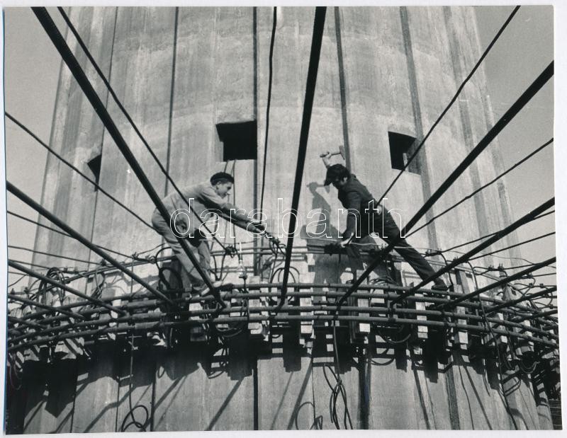Beschreibung: cca 1970 Horváth Ákos feliratozott, vintage fotóművészeti alkotása (Dunaújvárosi víztorony építése), 15x20 cm