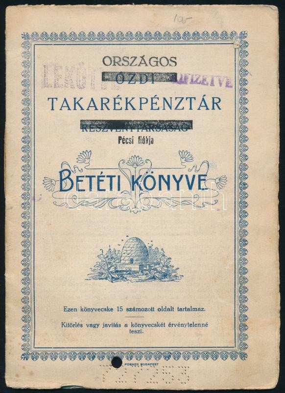 Beschreibung: cca 1950 Országos Takarékpénztár (Ózdi Takarékpénztár Rt.) betéti könyve, lyukasztással, kissé sérült, foltos, 15 p.