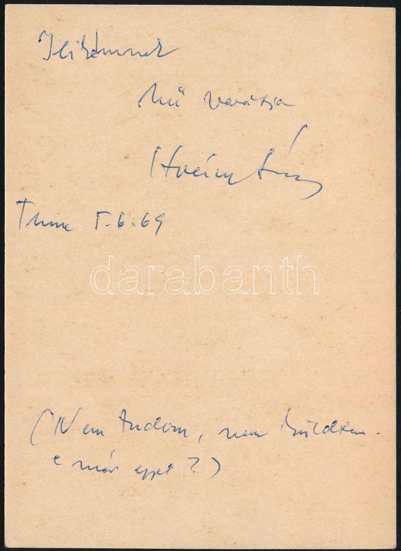 1969 Dr. Holéczy Sextett, hátoldalon üdvözlő sorokkal és aláírással https://www.darabanth.com/de/407-Fernauktion/407.0/Kunst-Dokumente-andere-Sammelgebiete/Signatur~20/1969-Dr-Holeczy-Sextett-hatoldalon-udvozlo-sorokkal-es-alairassal~II2517593