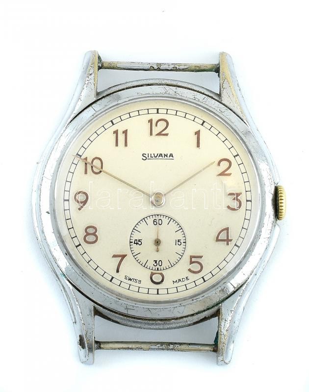 Silvana mechanikus karóra, működik, kopásnyomokkal, d: 3,8 cm https://www.darabanth.com/de/407-Fernauktion/407.0/Kunst-Dokumente-andere-Sammelgebiete/Uhren~10/Silvana-mechanikus-karora-mukodik-kopasnyomokkal-d-3-8-cm~II2516514
